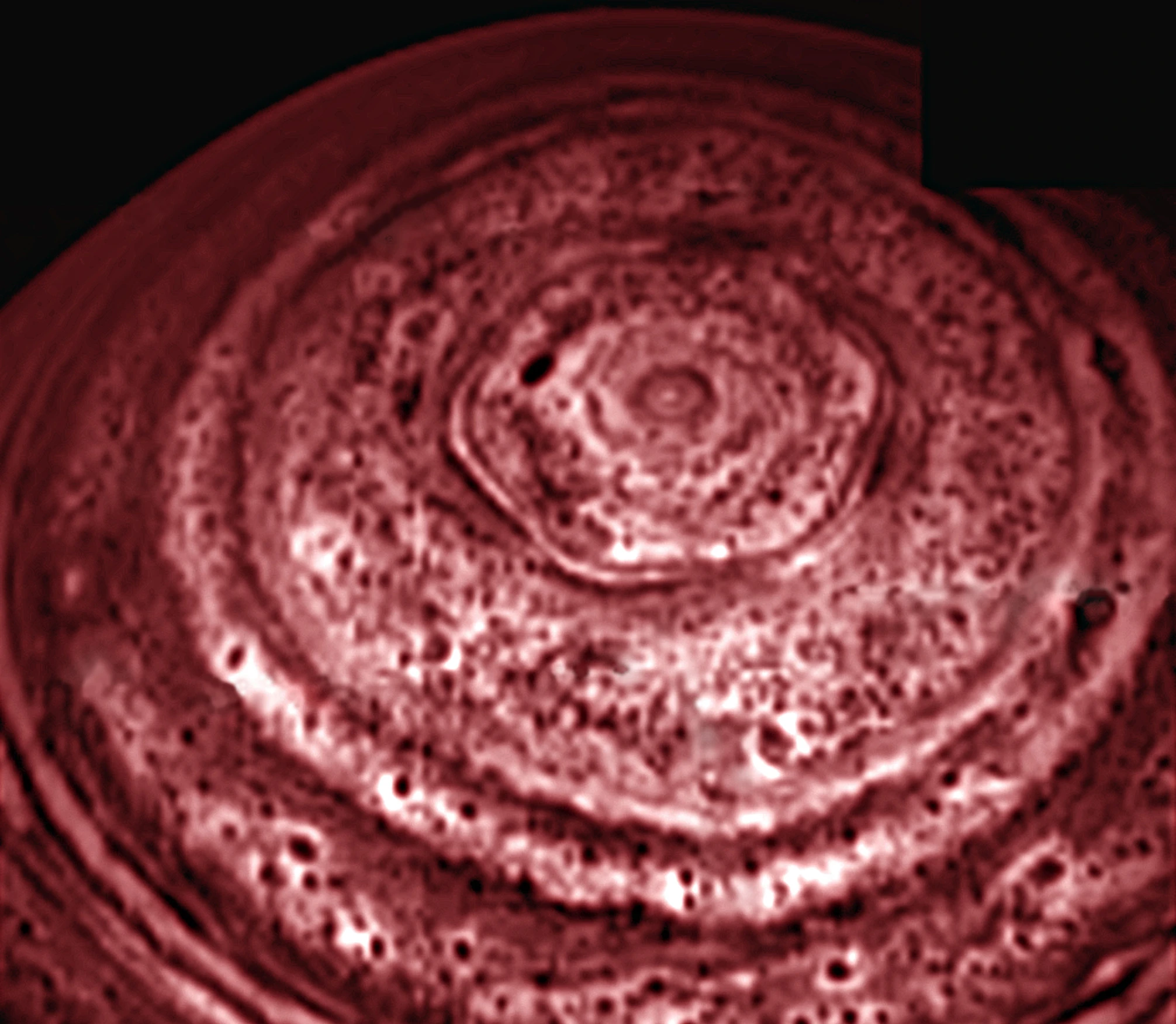North polar hexagonal cloud feature, discovered by Voyager 1 and confirmed in 2006 by Cassini. [1] [2]